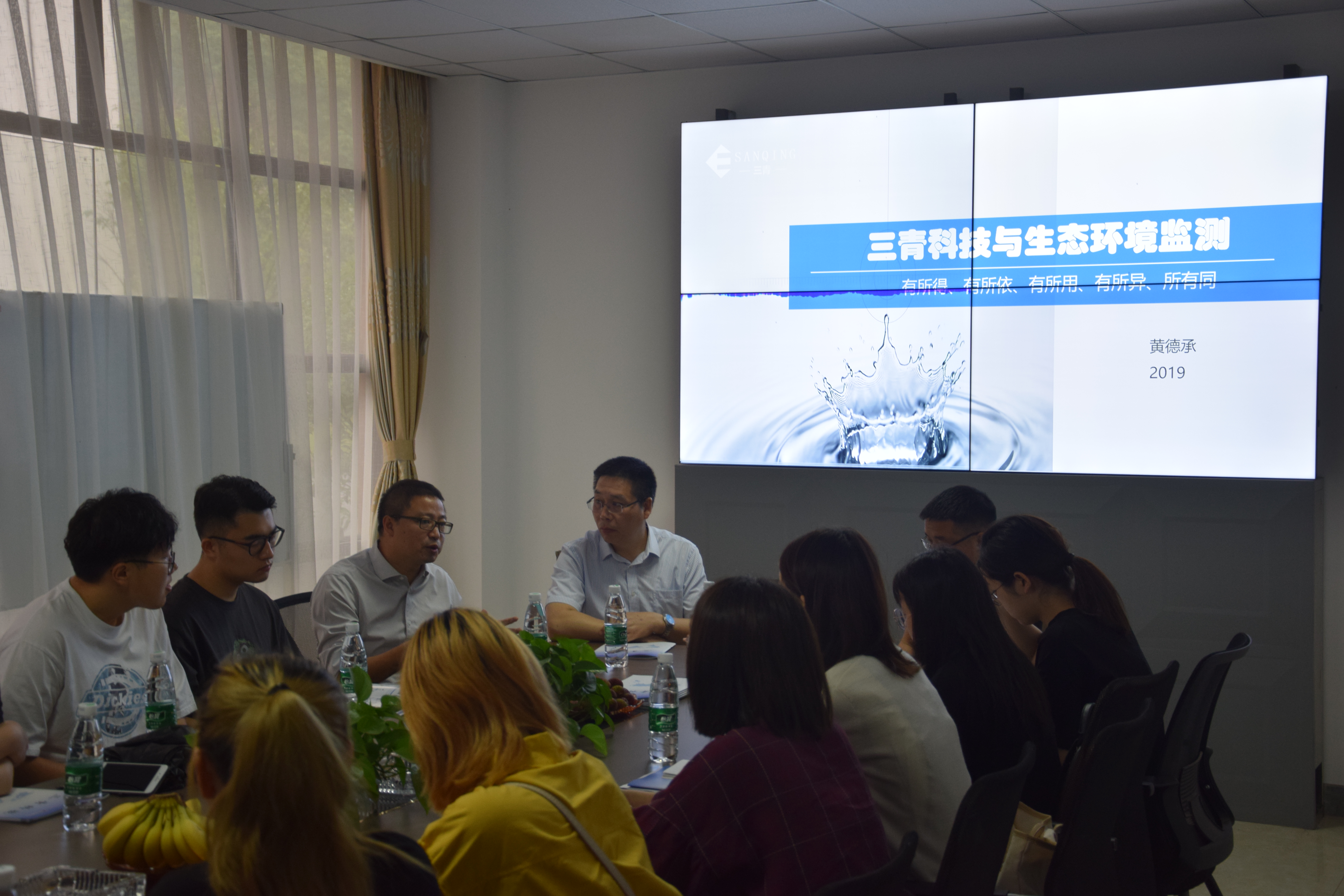 余總和黃總向師生介紹環保行業與公司概況。